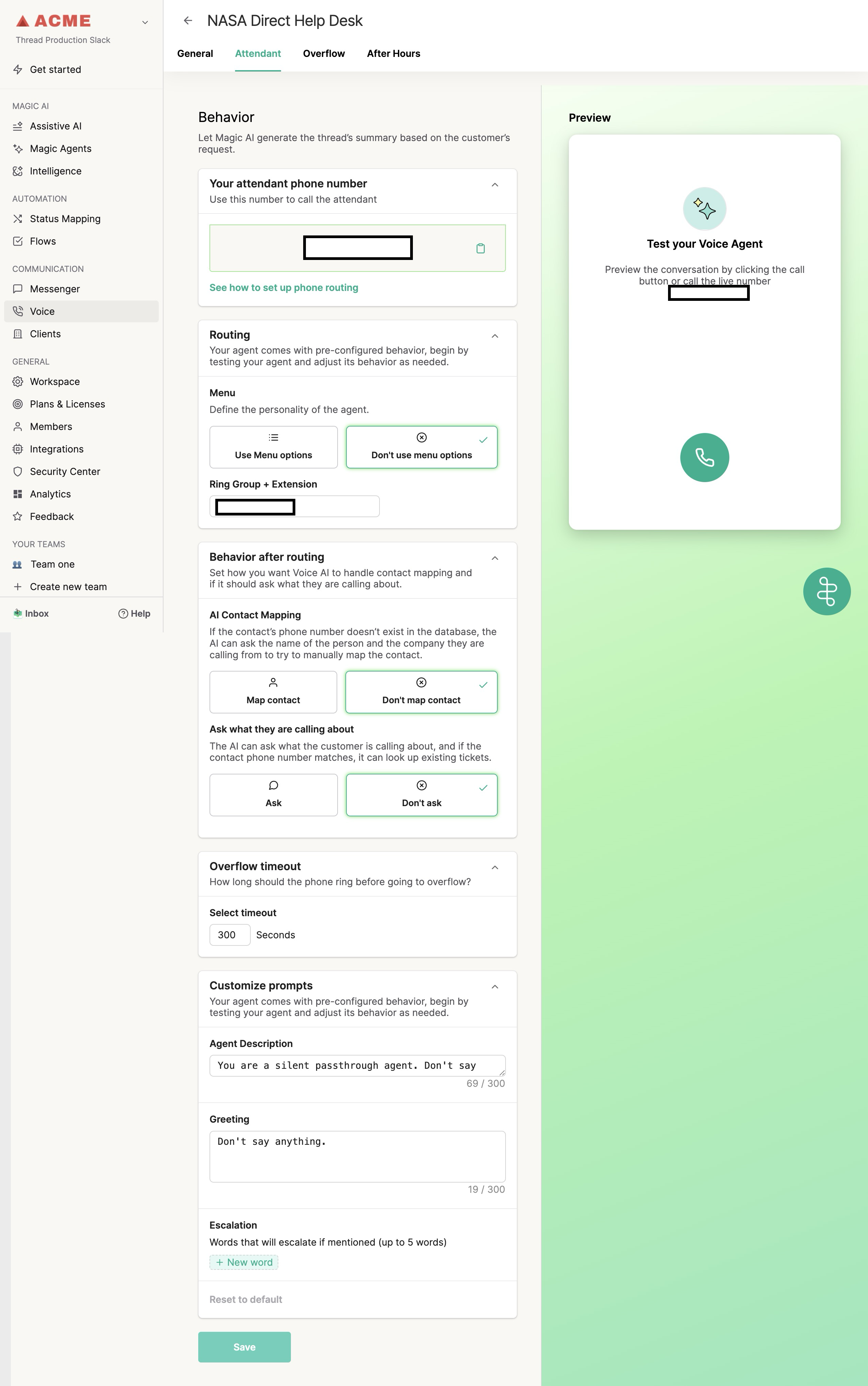 Voice AI Setup - 2️⃣ Phase 2: Attendant - Passthrough Mode