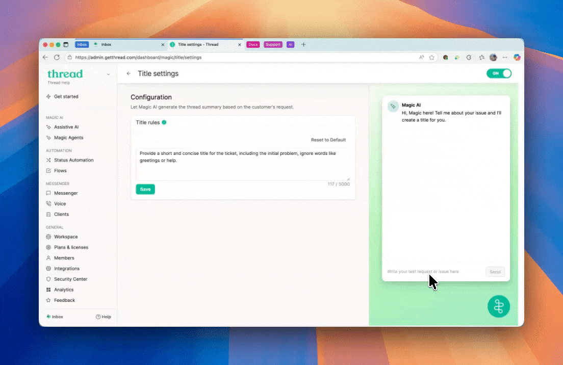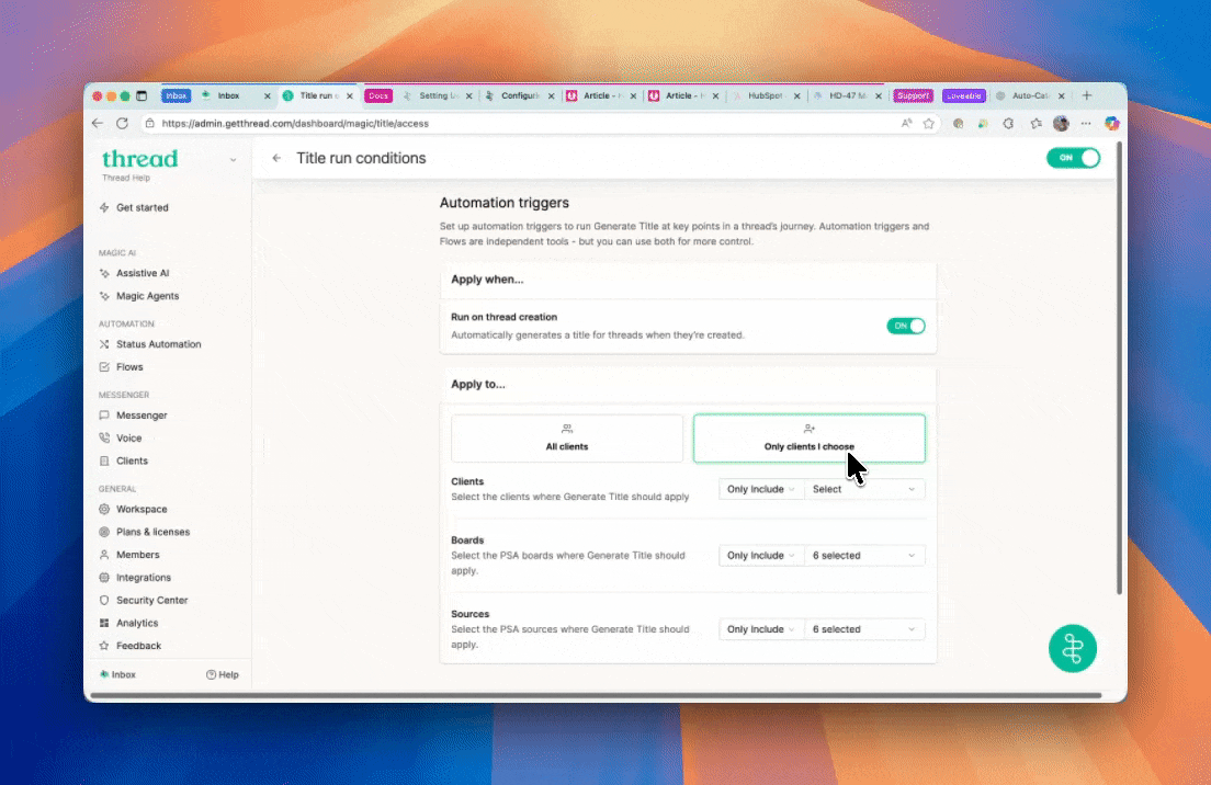 Magic Title automatically updates thread titles based on the context of your conversations, ensuring everything stays synced with your PSA system.