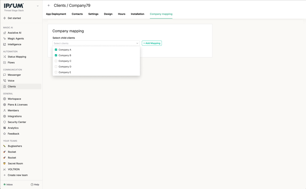 - Cannot find a child company? Ensure the child company has been created in the Clients list first. You cannot map a company that does not exist in the system.