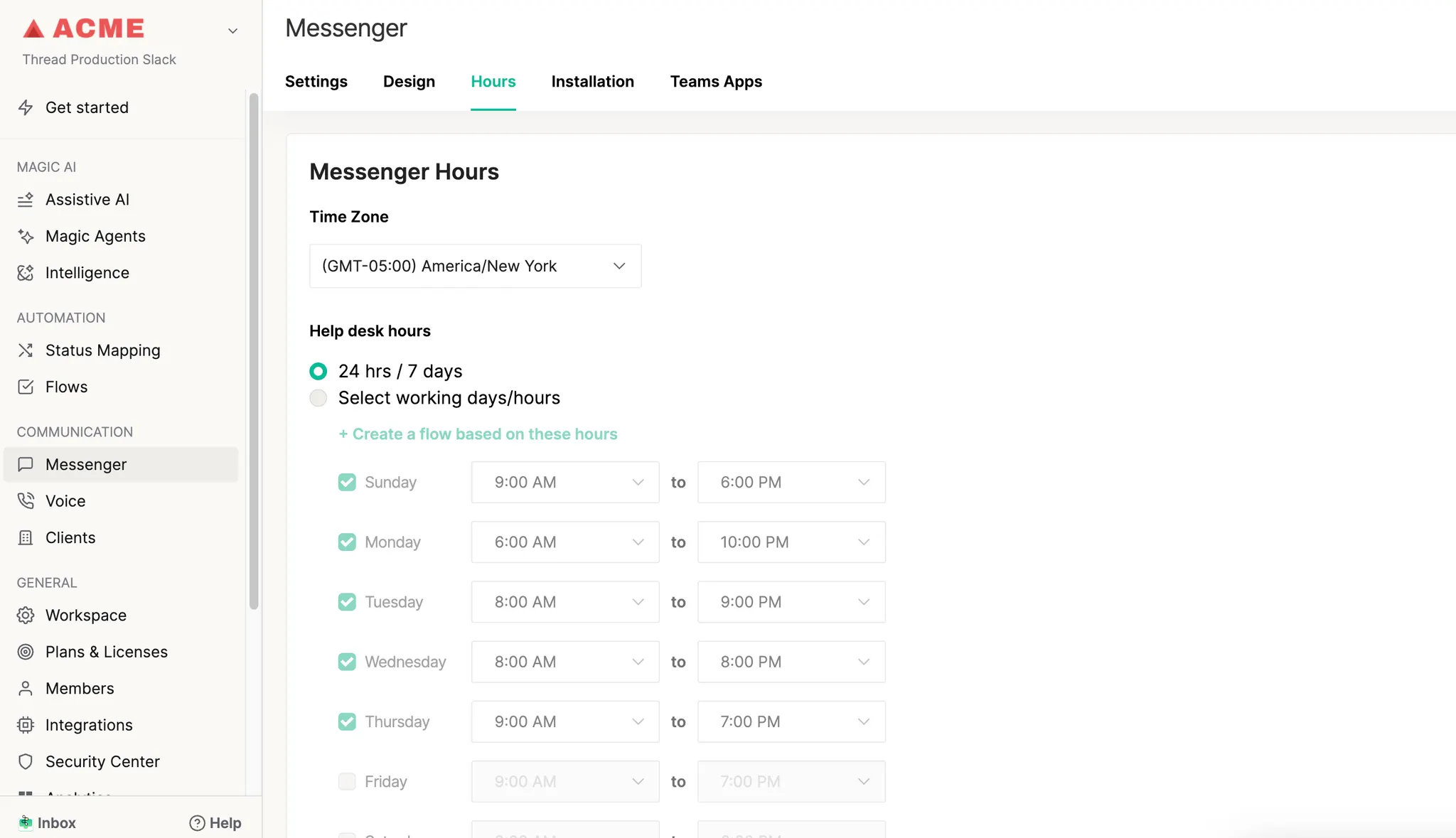 Important:Β Working hours use theΒ Messenger Hours timezone, which may be different from your company timezone!