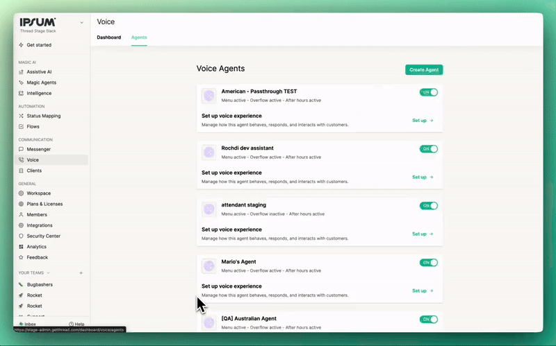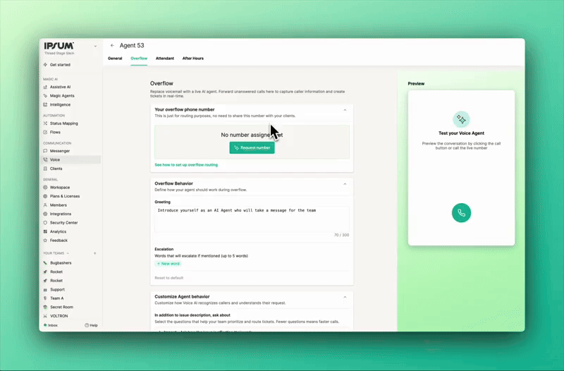 - In Thread, under Agent > Overflow > Default Board and Source, select this new "Voice AI" source.
