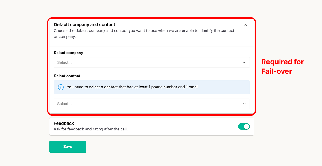 - Why: If the AI cannot identify the caller's phone number in your PSA, it needs a fallback contact to create the ticket against. Without this, the system will error out.
