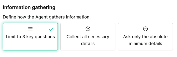 - Limit to 3 key questions – The Agent will ask only the most relevant questions to quickly understand the issue.