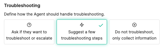 - Do not troubleshoot, only collect information – The Agent will skip troubleshooting and focus solely on gathering details for escalation.