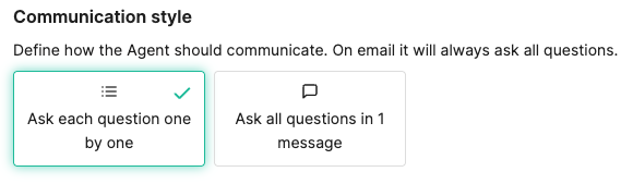 - Ask all questions in one message – The Agent will send all questions at once, allowing the contact to respond in a single message.