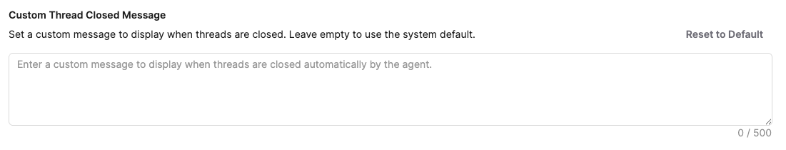The Custom Thread Closed Message is shown to the contact when a thread is automatically closed by the Agent.