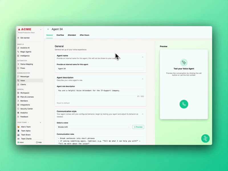 Voice AI capabilities allow your business to handle calls intelligently, ensuring no client query goes unanswered while optimizing your team's workflow.