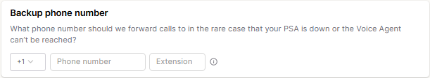 Enter a Backup number that the agent will fall back to in the rare case of PSA Outages