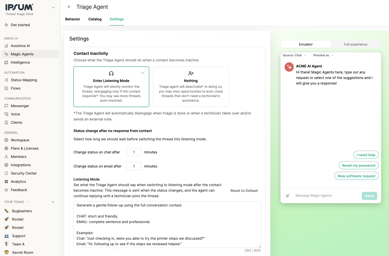 Set the Timer: Define how much time should pass before the agent switches from active triage to Listening Mode.