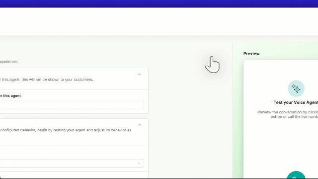 - Navigate to the voice tab on the side bar and select the Agents Tab > + Create Agent.