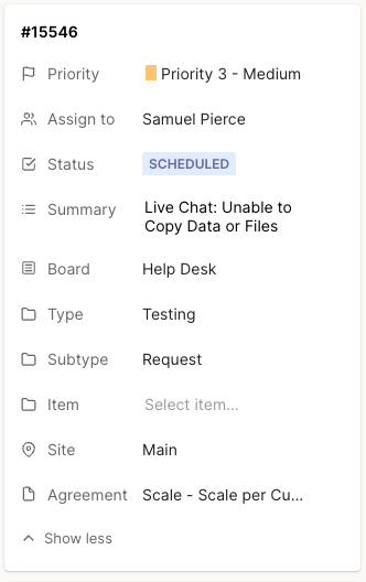 The Thread Information section displays all of the core ticket details synced from your PSA.