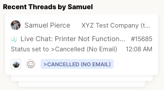 The Recent Threads section gives you quick visibility into other threads from the same contact.